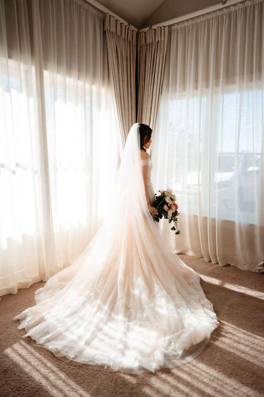 Please note: The price displayed on this page applies solely to the available sample gowns and includes GST. Should you wish to add, adjust, or remove any design elements, additional alteration or customisation fees will be required. For any further special requests, please do not hesitate to contact us directly via text.