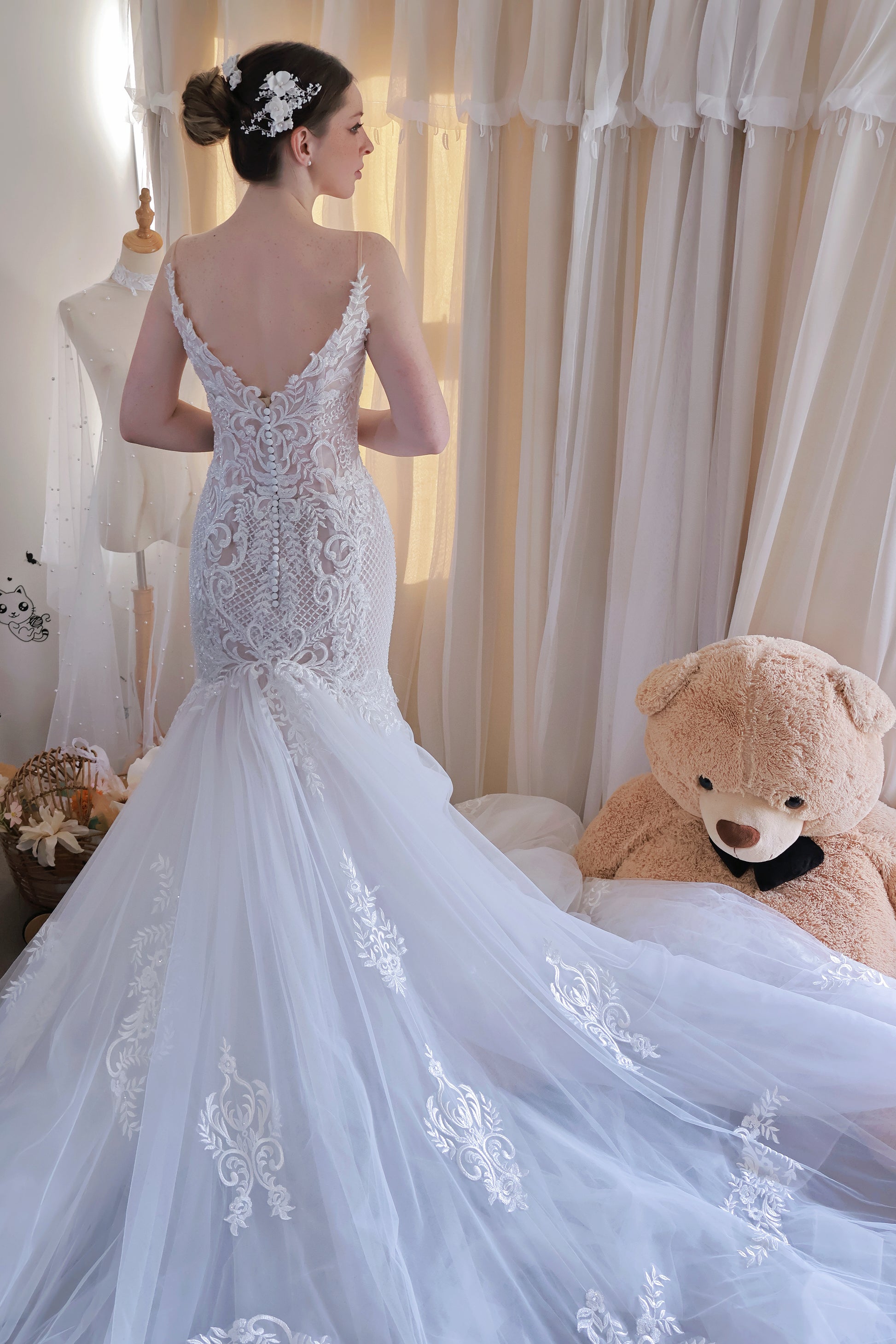 - Custom veil or accessory requests are welcomed.